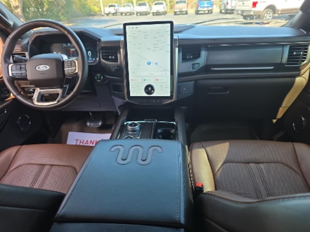 Ford Gold Certified Certified, 22 Speakers, 3rd row seats: split-bench, 4-Wheel Disc Brakes, ABS brakes, Active Park Assist 2.0 Removal, Adaptive suspension, Adjustable pedals, Advanced Cargo Manager, Air Conditioning, Alloy wheels, AM/FM radio: SiriusXM with 360L, Auto High-beam Headlights, Auto Start-Stop Removal, Auto-dimming door mirrors, Auto-dimming Rear-View mirror, Automatic temperature control, Black Roof-Rail Crossbars, Brake assist, Bumpers: body-color, Compass, Continuous Controlled Damping (CCD), Delay-off headlights, Driver door bin, Driver vanity mirror, Dual front impact airbags, Dual front side impact airbags, Electronic Stability Control, Emergency communication system: SYNC 4 911 Assist, Equipment Group 400A Standard Package, Exterior Parking Camera Rear, Four wheel independent suspension, Front anti-roll bar, Front Bucket Seats, Front Center Armrest, Front dual zone A/C, Front fog lights, Front reading lights, Fully automatic headlights, Garage door transmitter, Genuine wood console insert, Genuine wood dashboard insert, Genuine wood door panel insert, Hands-Free Foot-Activated Feature Removal, Heated door mirrors, Heated front seats, Heated rear seats, Heated steering wheel, Heated/Ventilated Del Rio Lthr Fr Captain's Chairs, Illuminated entry, Leather steering wheel, Low tire pressure warning, Memory seat, Navigation system: Connected Navigation, Occupant sensing airbag, Outside temperature display, Overhead airbag, Overhead console, Panic alarm, Passenger door bin, Passenger vanity mirror, Pedal memory, Power door mirrors, Power driver seat, Power Liftgate, Power moonroof, Power passenger seat, Power steering, Power windows, Radio data system, Radio: B&O Unleashed Sound System by Bang & Olufsen, Rain sensing wipers, Rear air conditioning, Rear anti-roll bar, Rear reading lights, Rear window defroster, Rear window wiper, Reclining 3rd row seat, Remote keyless entry, Second Row Power Windows Removal, Security system, SiriusXM w/360L, Speed control, Speed-sensing steering, Speed-Sensitive Wipers, Split folding rear seat, Spoiler, Steering wheel memory, Steering wheel mounted audio controls, SYNC 4 w/Enhanced Voice Recognition, Tachometer, Telescoping steering wheel, Tilt steering wheel, Traction control, Trip computer, Turn signal indicator mirrors, Variably intermittent wipers, Ventilated front seats, Voltmeter, Wheels: 22" 6-Spoke Polished Aluminum.