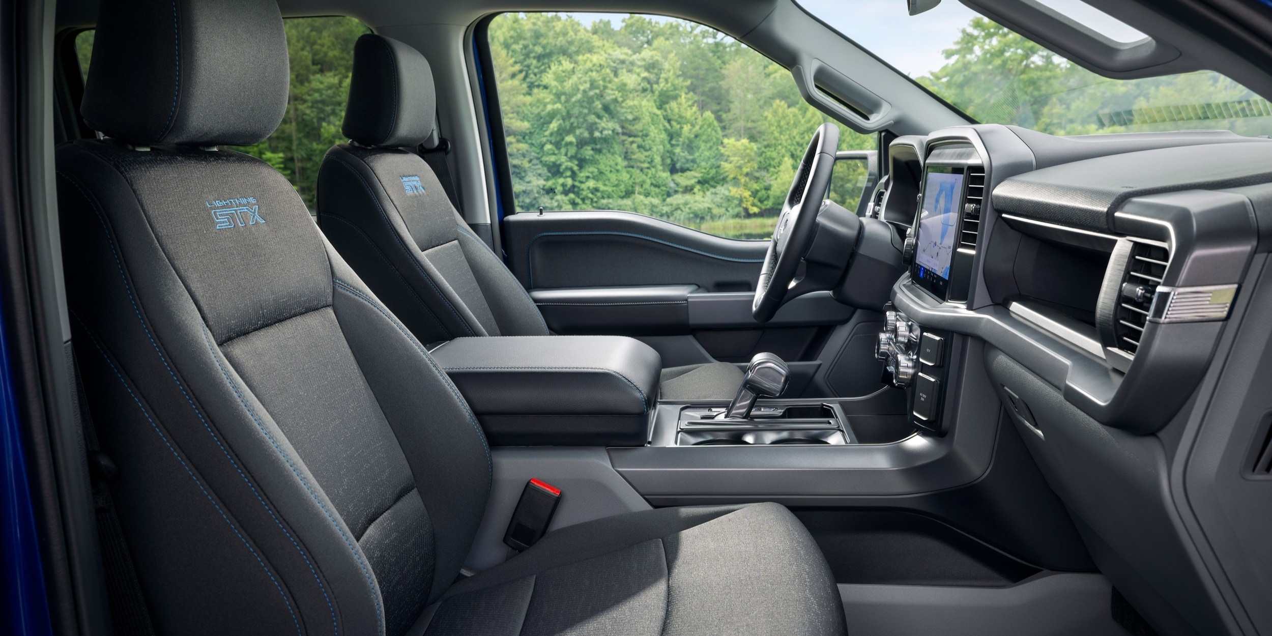 The F-150's bold exterior design commands attention with its distinctive grille options, available LED lighting, and muscular stance. Inside, the cabin offers multiple seating configurations. You can also choose from different seating materials, which include cloth, ActiveX, and leather-trimmed options across various trim levels. From the functional simplicity of work truck interiors to the luxury appointments found in King Ranch and Platinum models, every F-150 interior is designed for comfort and durability.