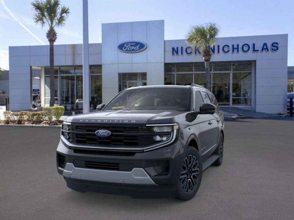 4WD, BlueCruise (equipment + 1-Year + 90-Day Plan), 10 Speakers, 2nd Row Power-Folding Captain's Chairs, 3.73 Axle Ratio, 3rd row seats: split-bench, 4-Wheel Disc Brakes, ABS brakes, Air Conditioning, Alloy wheels, AM/FM radio: SiriusXM with 360L, Apple CarPlay/Android Auto, Auto High-beam Headlights, Auto-dimming door mirrors, Auto-dimming Rear-View mirror, Automatic temperature control, BlueCruise Equipped (90-Day Trial), Brake assist, Bumpers: body-color, Compass, Delay-off headlights, Driver door bin, Driver vanity mirror, Dual front impact airbags, Dual front side impact airbags, Electronic Stability Control, Emergency communication system: 911 Assist, Equipment Group 600A Standard Package, Exterior Parking Camera Rear, Ford Connectivity Package (1-Year Included), Ford Digital Experience, Four wheel independent suspension, Front anti-roll bar, Front Bucket Seats, Front Center Armrest, Front dual zone A/C, Front License Plate Bracket, Front reading lights, Fully automatic headlights, Garage door transmitter, Genuine wood dashboard insert, Genuine wood door panel insert, Heated and Ventilated Leather Front Captain's Chairs, Heated door mirrors, Heated front seats, Heated rear seats, Heated steering wheel, Illuminated entry, Intersection Assist, Leather steering wheel, Low tire pressure warning, Memory seat, Navigation System, Occupant sensing airbag, Outside temperature display, Overhead airbag, Overhead console, Panic alarm, Passenger door bin, Passenger vanity mirror, Power door mirrors, Power driver seat, Power moonroof: Vista Roof, Power passenger seat, Power steering, Power Tilt/Telescopic Steering Wheel with Memory, Power windows, Radio data system, Radio: B&O Sound System by Bang and Olufsen, Rain sensing wipers, Rear air conditioning, Rear anti-roll bar, Rear reading lights, Rear window defroster, Rear window wiper, Reclining 3rd row seat, Remote keyless entry, Security system, SiriusXM with 360L, Speed control, Speed-sensing steering, Speed-Sensitive Wipers, Split folding rear seat, Spoiler, Steering wheel memory, Steering wheel mounted audio controls, Tachometer, Telescoping steering wheel, Tilt steering wheel, Traction control, Trip computer, Turn signal indicator mirrors, Variably intermittent wipers, Ventilated front seats, Voltmeter, Wheels: 20" x 8.5" Ebony Bright Machined Aluminum, 4WD, BlueCruise (equipment + 1-Year + 90-Day Plan).