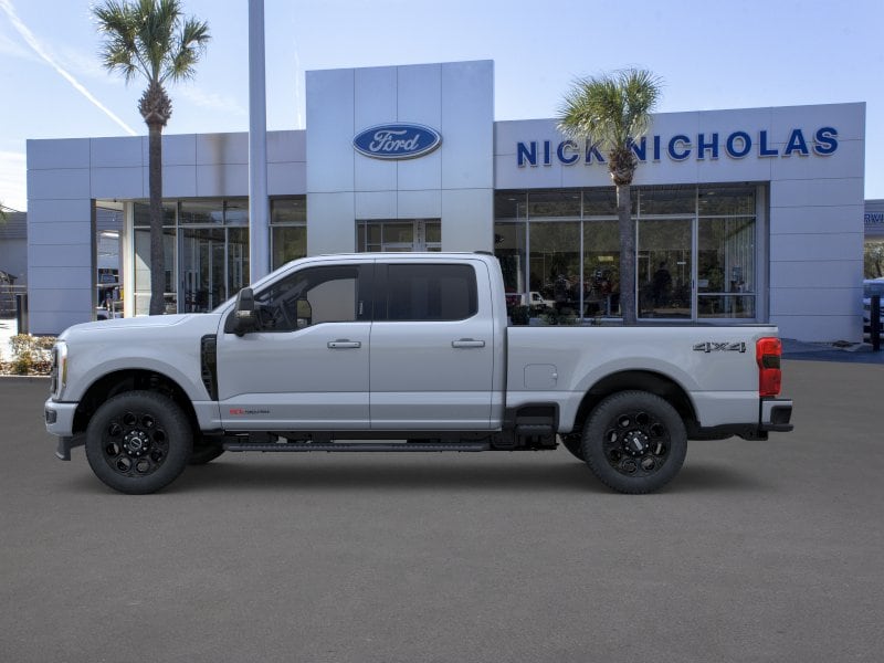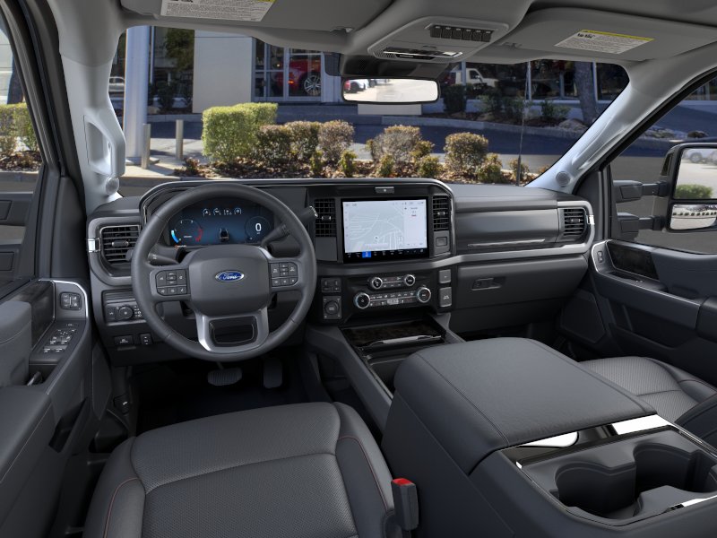 4WD, 4-Wheel Disc Brakes, 6" Ebony Black Angular Running Boards, 8 Speakers, ABS brakes, Adaptive Cruise Control with Stop-and-Go, Adjustable pedals, Air Conditioning, Alloy wheels, AM/FM radio: SiriusXM with 360L, Auto High-beam Headlights, Auto-dimming Rear-View mirror, Automatic High Beam, Automatic temperature control, Black Appearance Package, Black Painted Front Grille Surround, BLIS with Cross-Traffic Alert, Body Color Front and Rear Bumpers, Brake assist, Bumpers: chrome, Compass, Delay-off headlights, Driver door bin, Driver vanity mirror, Dual AGM 68 AH Battery, Dual front impact airbags, Dual front side impact airbags, Ebony Black Painted Mirror Caps, Electronic Stability Control, Emergency communication system: SYNC 4 911 Assist, Flow-Through Console, Ford Connectivity Package (1-Year Included), Front ActiveX Trimmed 40/Console/40 Seats, Front and Rear Parking Sensors, Front anti-roll bar, Front Bucket Seats, Front Center Armrest, Front dual zone A/C, Front fog lights, Front reading lights, Fully automatic headlights, Garage door transmitter, GVWR: F-250 >10K Package, Heated door mirrors, Heated front seats, Heated rear seats, Heated steering wheel, High Capacity 11.6" Axle Upgrade Package, Illuminated entry, Internet access capable: 5G Modem - Ford Connectivity Package, Lane-Keeping System, Lariat Premium Package, Low tire pressure warning, Memory seat, Navigation system: Connected Navigation, Order Code 608A, Outside temperature display, Overhead airbag, Overhead console, Panic alarm, Passenger door bin, Passenger vanity mirror, Pedal memory, Post-Collision Braking, Power door mirrors, Power driver seat, Power passenger seat, Power steering, Power windows, Power-Sliding Rear-Window with Defrost, Pre-Collision Assist, Privacy Glass, Pro Power Onboard - 2kW, Pro Trailer Backup Assist, Pro Trailer Hitch Assist, Radio: B&O Sound System by Bang and Olufsen, Rain sensing wipers, Rear Parking Sensors, Rear reading lights, Rear seat center armrest, Rear step bumper, Rear window defroster, Remote keyless entry, SecuriCode Keyless Entry Keypad (driver's Side), Security system, SiriusXM with 360L, Speed control, Split folding rear seat, Steering wheel mounted audio controls, SYNC 4 with Enhanced Voice Recognition, Tachometer, Tailgate Step and Handle, Telescoping steering wheel, Tilt steering wheel, Traction control, Trip computer, Turn signal indicator mirrors, Twin Panel Power Moonroof, Upfitter Switches (6), Variably intermittent wipers, Ventilated front seats, Wheels: 18" Bright Machined and Carbonized Gray Aluminum, 4WD.