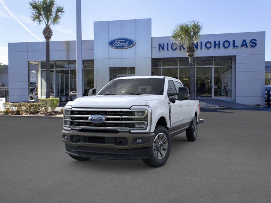 4WD, 3.31 Axle Ratio, High Capacity 11.6" Axle Upgrade Package, Tough Bed Spray-In Bedliner, 14 Speakers, 4-Wheel Disc Brakes, 410 Amp Dual Alternators, ABS brakes, Adjustable pedals, Air Conditioning, Alloy wheels, AM/FM radio: SiriusXM with 360L, Auto High-beam Headlights, Auto tilt-away steering wheel, Auto-dimming Rear-View mirror, Automatic temperature control, Brake assist, Compass, Delay-off headlights, Driver door bin, Driver vanity mirror, Dual front impact airbags, Dual front side impact airbags, Electronic Stability Control, Emergency communication system: SYNC 4 911 Assist, F-250 >10K GVWR Package, Flow-Through Console, Ford Connectivity Pack (One-Time Purchase - 7 Yrs), Ford Connectivity Package (1-Year Included), Front anti-roll bar, Front Bucket Seats, Front Center Armrest, Front dual zone A/C, Front fog lights, Front reading lights, Fully automatic headlights, Garage door transmitter, Heads-Up Display, Heated door mirrors, Heated front seats, Heated rear seats, Heated steering wheel, Illuminated entry, Leather steering wheel, Low tire pressure warning, Memory seat, Navigation system: Connected Navigation, Order Code 700A, Outside temperature display, Overhead airbag, Overhead console, Panic alarm, Passenger door bin, Passenger vanity mirror, Pedal memory, Power door mirrors, Power driver seat, Power passenger seat, Power steering, Power windows, Radio: B&O Unleashed Sound System by Bang & Olufsen, Rain sensing wipers, Rear reading lights, Rear seat center armrest, Rear step bumper, Rear window defroster, Remote keyless entry, SecuriCode Keyless Entry Keypad (Driver's Side), Security system, SiriusXM w/360L, Speed control, Split folding rear seat, Steering wheel memory, Steering wheel mounted A/C controls, Steering wheel mounted audio controls, SYNC 4 w/Enhanced Voice Recognition, Tachometer, Telescoping steering wheel, Tilt steering wheel, Traction control, Trip computer, Turn signal indicator mirrors, Unique King Ranch Leather 40/Console/40 Seats, Variably intermittent wipers, Ventilated front seats, Wheels: 20" Bright Machined Aluminum, 4WD, 3.31 Axle Ratio, High Capacity 11.6" Axle Upgrade Package, Tough Bed Spray-In Bedliner.