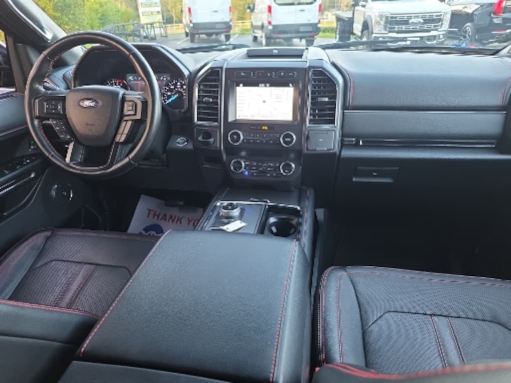 12 Speakers, 3.15 Axle Ratio, 360-Degree Camera w/Split View, 3rd row seats: split-bench, 4-Wheel Disc Brakes, ABS brakes, Adaptive Cruise Control, Adjustable pedals, Air Conditioning, Alloy wheels, AM/FM radio: SiriusXM, AppLink/Apple CarPlay and Android Auto, Auto-dimming door mirrors, Auto-dimming Rear-View mirror, Automatic High Beam Headlamps, Automatic temperature control, Black Roof Rack Side Rails, Body Color Door Handles, Brake assist, Bumpers: body-color, Compass, Delay-off headlights, Driver Assistance Package, Driver door bin, Driver vanity mirror, Dual front impact airbags, Dual front side impact airbags, Electronic Stability Control, Emergency communication system: SYNC 3 911 Assist, Enhanced Active Park Assist System, Equipment Group 303A, Exterior Parking Camera Rear, Four wheel independent suspension, Front anti-roll bar, Front Bucket Seats, Front Center Armrest, Front dual zone A/C, Front fog lights, Front reading lights, Fully automatic headlights, Garage door transmitter, Gloss Black Five-Bar Grille, Gloss Black Power Deployable Running Boards, Gloss Black Sideview Mirror Caps, Gloss Black Tailgate Applique, Heated & Cooled Leather Front Bucket Seats, Heated door mirrors, Heated front seats, Heated rear seats, Heated steering wheel, Illuminated entry, Lane-Keeping System, Leather steering wheel, LED Fog Lamps w/Gloss Black Bezels, LED Headlamps w/Gloss Black Housing, LED Taillamp w/Gloss Black Housing, Low tire pressure warning, Memory seat, Occupant sensing airbag, Outside temperature display, Overhead airbag, Overhead console, Panic alarm, Panoramic Vista Roof, Passenger door bin, Passenger vanity mirror, Pedal memory, Power door mirrors, Power driver seat, Power Liftgate, Power passenger seat, Power steering, Power windows, Pre-Collision Assist, Radio data system, Radio: B&O Sound System by Bang & Olufsen, Rain-Sensing Front Wipers, Rear air conditioning, Rear anti-roll bar, Rear audio controls, Rear reading lights, Rear window defroster, Rear window wiper, Reclining 3rd row seat, Remote keyless entry, Roof rack: rails only, Security system, SiriusXM Satellite Radio, Speed control, Speed-sensing steering, Speed-Sensitive Wipers, Split folding rear seat, Stealth Edition Package, Steering wheel memory, Steering wheel mounted audio controls, SYNC 3 Communications & Entertainment System, Tachometer, Telescoping steering wheel, Tilt steering wheel, Traction control, Trip computer, Turn signal indicator mirrors, Variably intermittent wipers, Ventilated front seats, Voice-Activated Touch-Screen Navigation System, Voltmeter, Wheels: 20" Premium Dark Tarnish-Painted Aluminum, Wheels: 22" Premium Black-Painted Aluminum.
