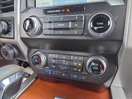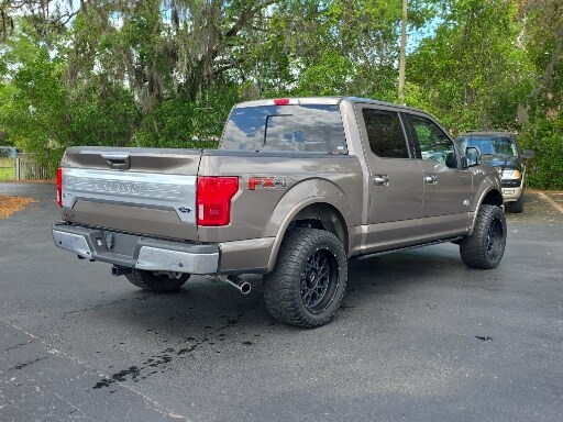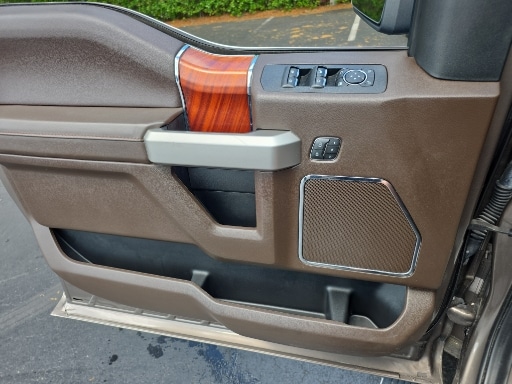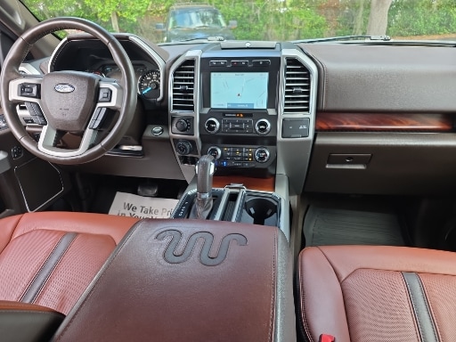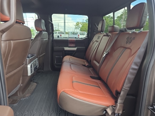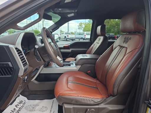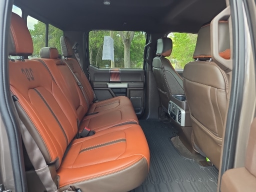 4WD, 10 Speakers, 18" Machined-Aluminum Wheels, 20" Machined-Aluminum Wheels, 360 Camera w/Split-View Display, 4-Wheel Disc Brakes, 4x4 FX4 Off-Road Bodyside Decal, ABS brakes, Active Park Assist, Adaptive Cruise Control, Adjustable pedals, Air Conditioning, Alloy wheels, AM/FM radio: SiriusXM, Auto High-beam Headlights, Auto tilt-away steering wheel, Auto-dimming door mirrors, Auto-dimming Rear-View mirror, Automatic temperature control, Brake assist, Bright Belt Moldings, Chrome Door Handles w/Body-Color Strap, Chrome Skull Caps on Exterior Mirrors, Class IV Trailer Hitch Receiver, Compass, Delay-off headlights, Driver door bin, Driver vanity mirror, Dual front impact airbags, Dual front side impact airbags, Electronic Stability Control, Emergency communication system: SYNC 3 911 Assist, Engine Oil Cooler, Equipment Group 601A Luxury, Extended Range 36 Gallon Fuel Tank, Exterior Parking Camera Rear, Front & Rear Chrome Bumpers, Front anti-roll bar, Front Bucket Seats, Front Center Armrest, Front dual zone A/C, Front fog lights, Front reading lights, Front wheel independent suspension, Fully automatic headlights, FX4 Off-Road Package, Garage door transmitter, Genuine wood dashboard insert, Genuine wood door panel insert, GVWR: 7,050 lbs Payload Package, Heated door mirrors, Heated front seats, Heated rear seats, Heated steering wheel, Hill Descent Control, Illuminated entry, Inflatable Rear Safety Belts, Integrated Trailer Brake Controller, King Ranch Chrome Appearance Package, King Ranch Leather Bucket Seats, King Ranch Monochromatic Paint Package, LED Sideview Mirror Spotlights, Low tire pressure warning, Max Trailer Tow Package, Memory seat, Multi-Contour Driver & Passenger Seats, Navigation System, Occupant sensing airbag, Off-Road Tuned Front Shock Absorbers, Outside temperature display, Overhead airbag, Overhead console, Painted Body-Color Wheellip Molding, Panic alarm, Passenger door bin, Passenger vanity mirror, Pedal memory, Power door mirrors, Power driver seat, Power passenger seat, Power steering, Power windows, Power-Deployable Running Boards, Pro Trailer Backup Assist, Radio data system, Radio: B&O Sound System by Bang & Olufsen, Rain sensing wipers, Rear Parking Sensors, Rear reading lights, Rear seat center armrest, Rear step bumper, Rear window defroster, Remote keyless entry, Security system, SiriusXM Radio, Speed control, Speed-sensing steering, Split folding rear seat, Steering wheel memory, Steering wheel mounted audio controls, SYNC 3, Tachometer, Tailgate Step w/Tailgate Lift Assist, Technology Package, Telescoping steering wheel, Tilt steering wheel, Tough Bed Spray-In Bedliner, Traction control, Tray Style Floor Liner, Trip computer, Turn signal indicator mirrors, Upgraded Front Stabilizer Bar, Variably intermittent wipers, Ventilated front seats, Voice-Activated Touchscreen Navigation, Voltmeter, Wheels: 20" Chrome-Like PVD, 4WD.