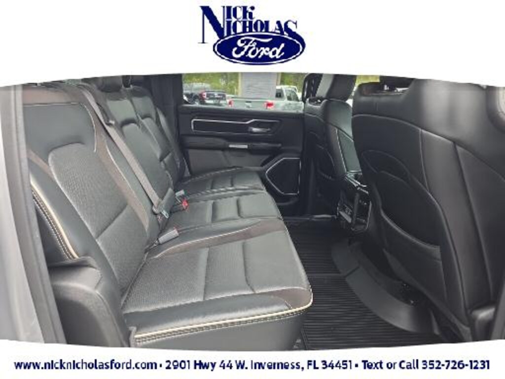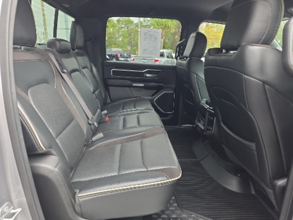 #1 Seat Foam Cushion, 10 Speakers, 2nd Row In Floor Storage Bins, 3 Rear Seat Head Restraints, 3.21 Rear Axle Ratio, 4 Way Front Headrests, 4-Wheel Disc Brakes, 48V Belt Starter Generator, 4G LTE Wi-Fi Hot Spot, 8.4" Touchscreen Display, ABS brakes, Adjustable pedals, Air Conditioning, All Plant-Installed Decals, Alloy wheels, AM/FM radio: SiriusXM, Anti-Spin Differential Rear Axle, Apple CarPlay, Apple CarPlay/Android Auto, Audio memory, Auto High Beam Headlamp Control, Auto-dimming door mirrors, Auto-Dimming Exterior Driver Mirror, Auto-dimming Rear-View mirror, Automatic temperature control, Black Interior Accents, Blind Spot & Cross Path Detection, Body Color Door Handles, Body Color Exterior Mirrors, Body Color Front Bumper, Body Color Premium Power Mirrors, Body Color Rear Bumper w/Step Pads, Brake assist, Bucket Seats, Bumpers: chrome, Chrome Exterior Mirrors, Compass, Connectivity - US/Canada, Convex Wide-Angle Mirror Insert, Delay-off headlights, Delete LED Lamp - Floor Console Bin, Driver door bin, Driver Seat Memory, Driver vanity mirror, Dual front impact airbags, Dual front side impact airbags, Electronic Stability Control, Exterior Mirrors Courtesy Lamps, Exterior Mirrors w/Heating Element, Exterior Mirrors w/Memory, Exterior Mirrors w/Supplemental Signals, Foam Bottle Insert (Door Trim Panel), For Details, Visit DriveUconnect.com, Front anti-roll bar, Front Center Armrest w/Storage, Front dual zone A/C, Front fog lights, Front License Plate Bracket, Front reading lights, Front Seat Back Map Pockets, Front wheel independent suspension, Full Length Upgraded Floor Console, Fully automatic headlights, Garage door transmitter, Global Telematics Box Module (TBM), Google Android Auto, GPS Antenna Input, Grille Surround 3 Body Color Tex 2 Black, Heated door mirrors, Heated Front Seats, Heated front seats, Heated Steering Wheel, Heated steering wheel, Heavy-Duty Engine Cooling, Illuminated entry, Integrated Center Stack Radio, Laramie Level 1 Equipment Group (DISC), Leather steering wheel, Leather Trim 40/20/40 Bench Seat, Leather Trimmed Bucket Seats, Low tire pressure warning, Memory seat, MOPAR Front & Rear Rubber Floor Mats, Occupant sensing airbag, Outside temperature display, Overhead airbag, Overhead console, Panic alarm, ParkSense Front/Rear Park Assist w/Stop, ParkView Rear Back-Up Camera, Passenger door bin, Passenger vanity mirror, Pedal memory, Power 2-Way Driver Lumbar Adjust, Power 2-Way Passenger Lumbar Adjust, Power 8-Way Driver & Passenger Seats, Power door mirrors, Power driver seat, Power passenger seat, Power steering, Power windows, Power-Folding Mirrors, Quick Order Package 25H Laramie, Radio data system, Radio: Uconnect 5 W w/8.4" Display, Rain Sensitive Windshield Wipers, Rear 60/40 Folding Seat, Rear 60/40 Folding Split Recline Seat, Rear anti-roll bar, Rear seat center armrest, Rear step bumper, Rear Underseat Compartment Storage (DISC), Rear window defroster, Remote keyless entry, Remote Tailgate Release, Security system, SiriusXM Radio Service, Speed control, Split folding rear seat, Sport Appearance Package, Sport Decal, Sport Performance Hood, Steering wheel mounted audio controls, Tachometer, Telescoping steering wheel, Tilt steering wheel, Traction control, Trip computer, Turn signal indicator mirrors, Twill Film Appliques, Variably intermittent wipers, Ventilated Front Seats, Ventilated front seats, Voltmeter, Wheel to Wheel Side Steps, Wheels: 18" x 8" Aluminum Base Painted, Wheels: 20" x 9" Premium Paint/Polished.